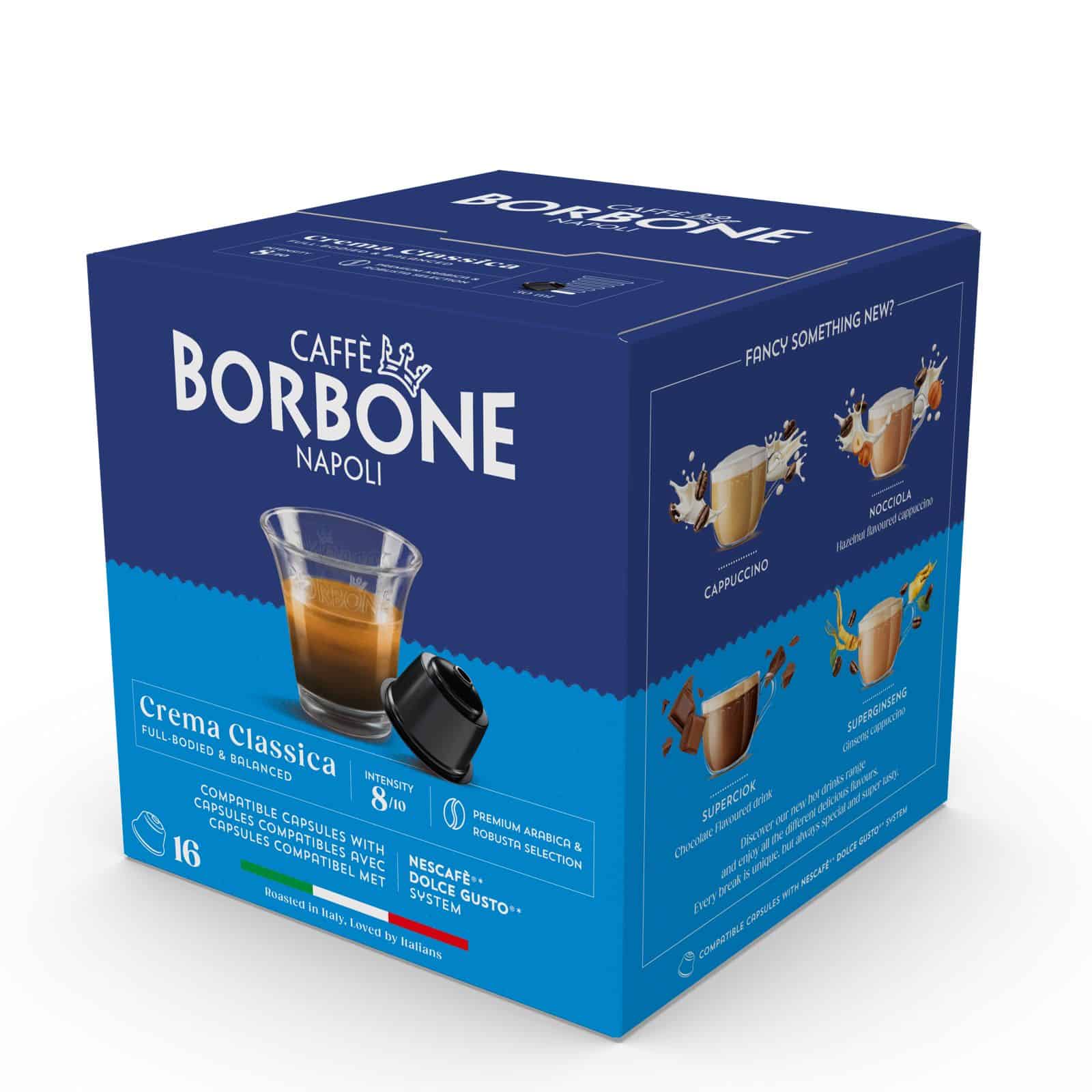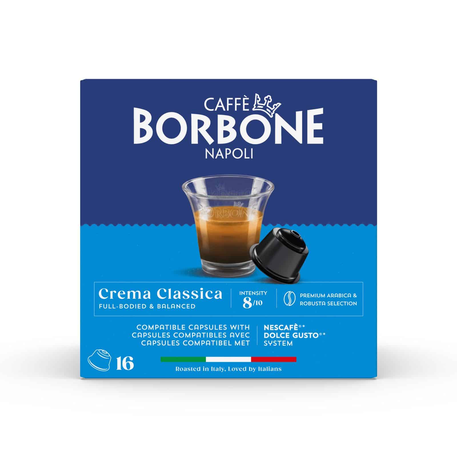 Boîte de 16 CAPSULES de café CREMA CLASSICA de CAFFE BORBONE pour machine Nescafé Dolce Gusto®️ – intensité 8/10